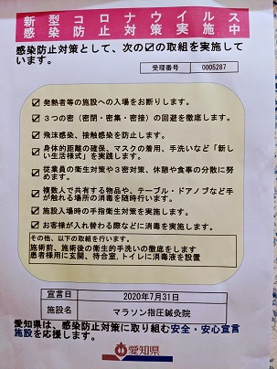 安全・安心宣言施設として愛知県のポスターを掲示し、感染拡大の防止と社会経済活動の維持の両立を目指します